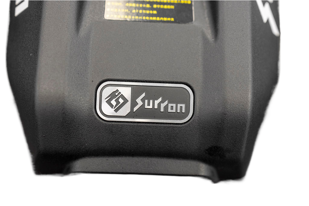 Serienmäßiger Ersatz für das geprägte Sur Ron-Logo auf dem Batteriefachdeckel.